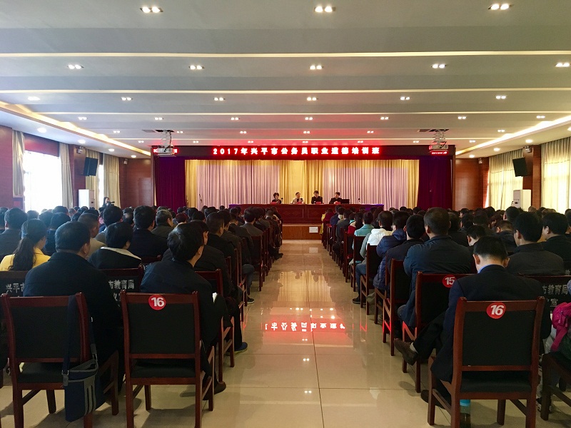 为进一步加强公务员队伍建设,提高公务员公共管理水平和职业道德素养,11月7日上午,兴平市2017年度公务员职业道德培训班开班了,全市1270名公务员(参公人员)及机关工勤人员分四期参加培训。